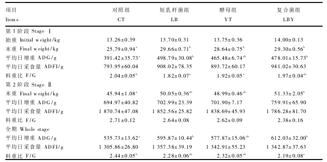 表2益生菌對(duì)生長(zhǎng)豬生長(zhǎng)性能的影響
